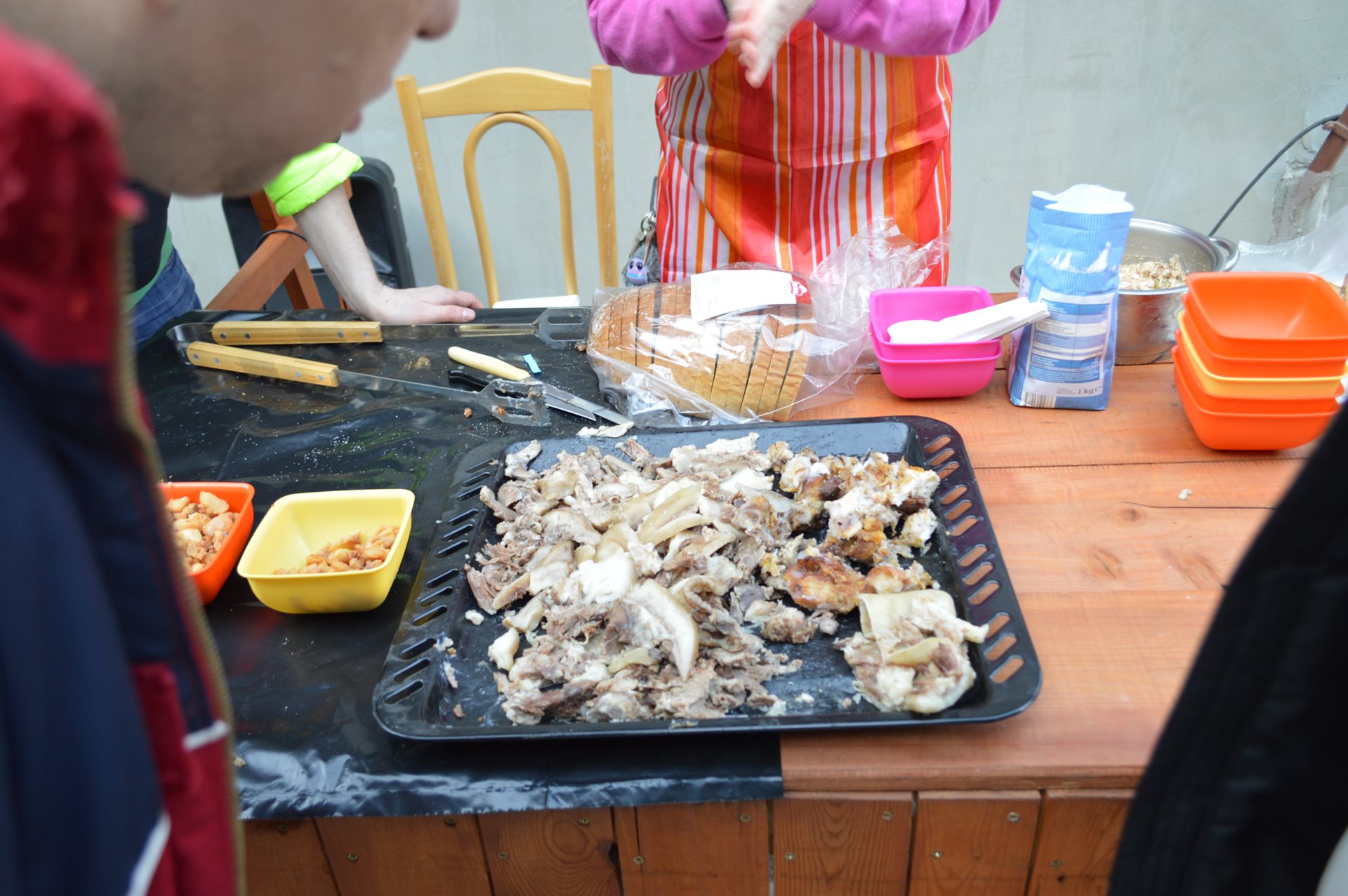 V minulém týdnu jsme nachystali na Zámečku zabíjačkové hody. S klienty jsme škvařili sádlo na škvarky, pekli vrabce, vařili prdelačku, smažili řízečky. Ze škvarků následně udělali škvarkovou pomazánku. Pochutnali jsme si na zabíjačkovém guláši, jelitech, jitrnicích, tlačence, ovaru a všem moc chutnalo.