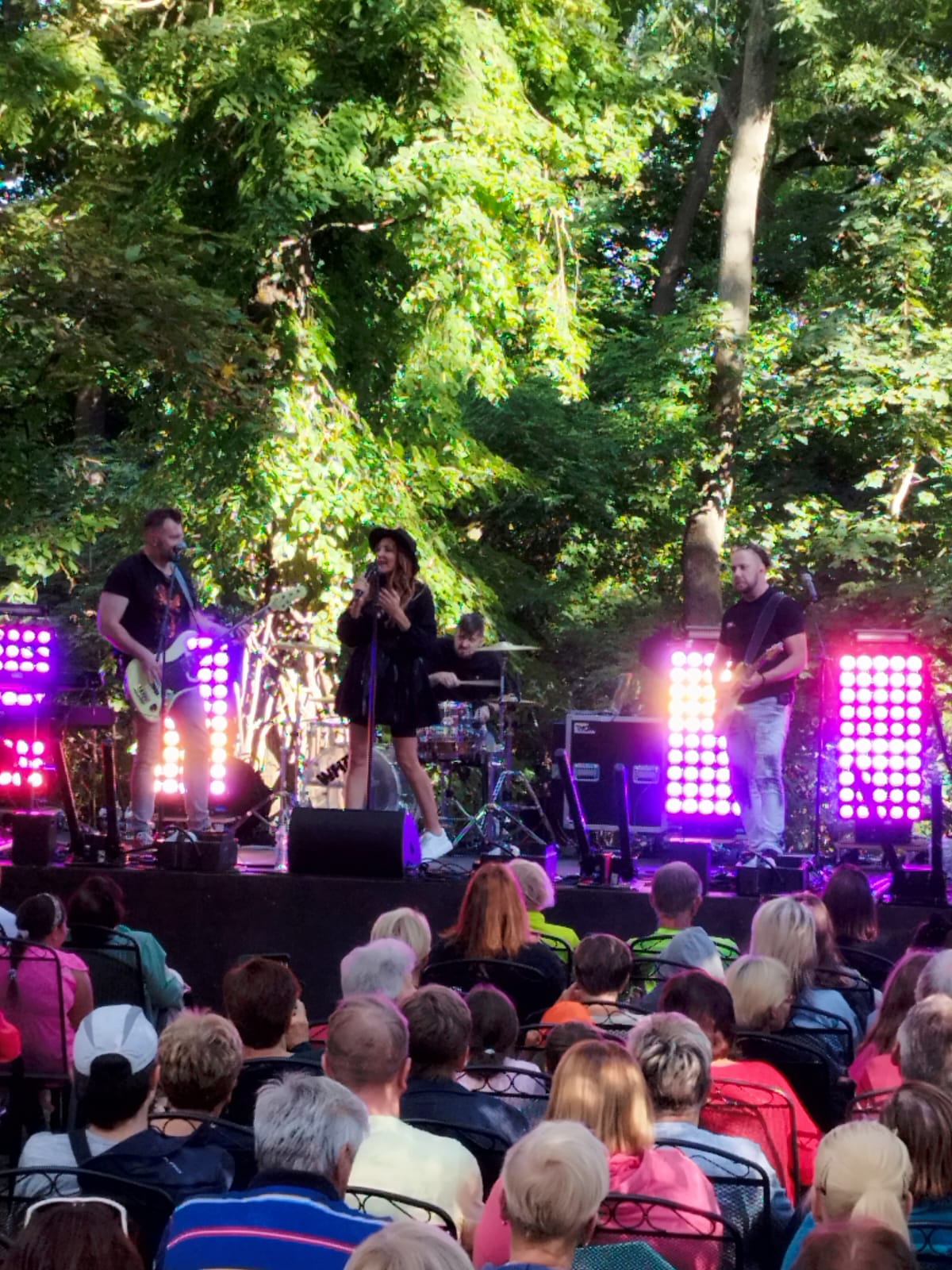 V neděli, 24. srpna 2025 měli někteří z našich klientů možnost se osobně setkat s populární zpěvačkou Olgou Lounovou a poslechnout si její nejnovější tvorbu na koncertě pod širým nebem v prostředí městského parku.