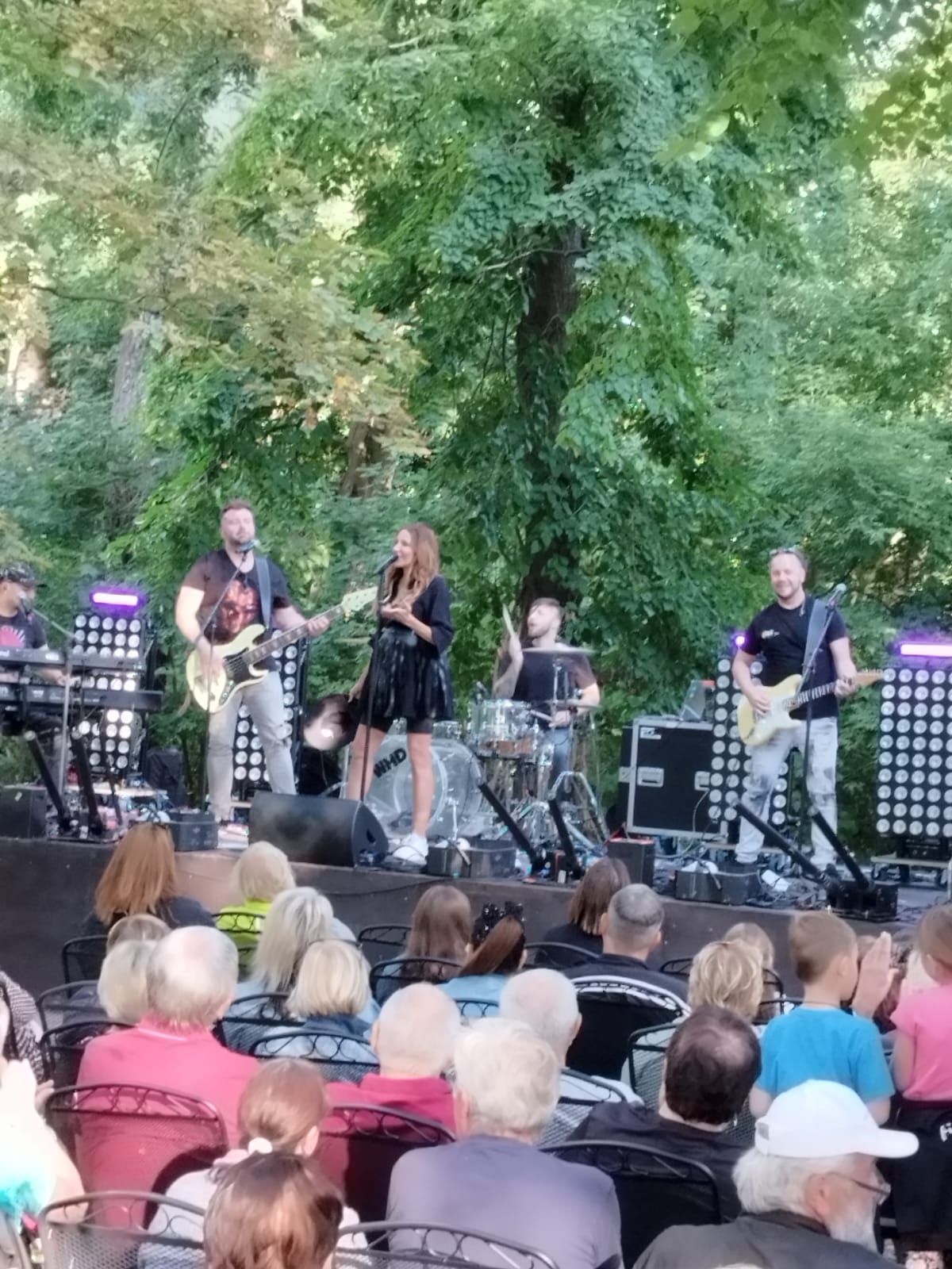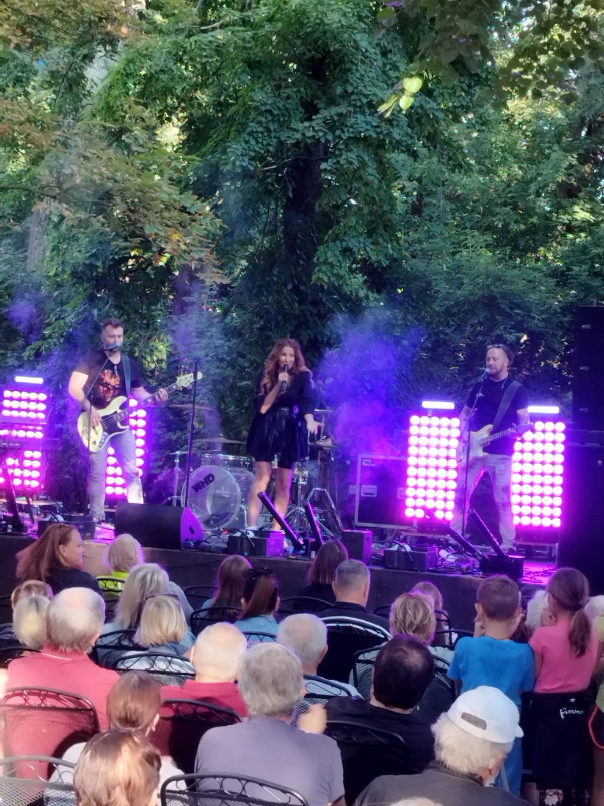 V neděli, 24. srpna 2025 měli někteří z našich klientů možnost se osobně setkat s populární zpěvačkou Olgou Lounovou a poslechnout si její nejnovější tvorbu na koncertě pod širým nebem v prostředí městského parku.